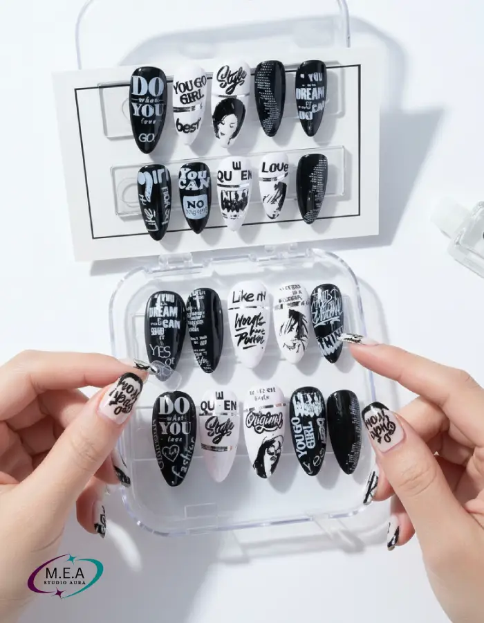 Après avoir suivi une formation spécialisée en stamping, j’ai fait de cette technique ma signature personnelle. Le stamping me permet de créer des histoires incroyables, de donner vie à des personnages et d’exprimer sur les ongles ce que les mots ne peuvent pas dire.