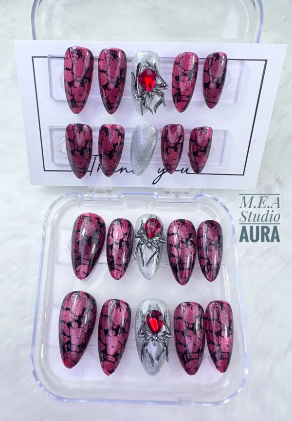 - Un set spectaculaire, hypnotisant, pensé pour celles qui veulent des press on nails qui ne passent JAMAIS inaperçus. Entre reflets cat eyes brûlants, effets craquelés en stamping noir ou argenté, et araignées finement travaillées, chaque capsule est une œuvre d'art explosive. Un trio de designs uniques réunis dans un set qui frôle la perfection. Longueur et Forme - Style : Amande - Forme étudiée pour un rendu puissant et moderne Design et Techniques - Couleurs : Rouge cat eyes intense, bleu profond à reflets violets, rouge orangé vibrant, gris doré multidimensionnel - Motifs : Effets craquelés en stamping noir ou…