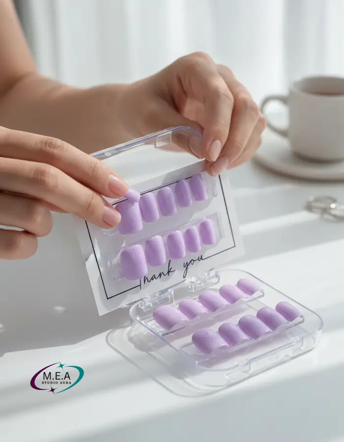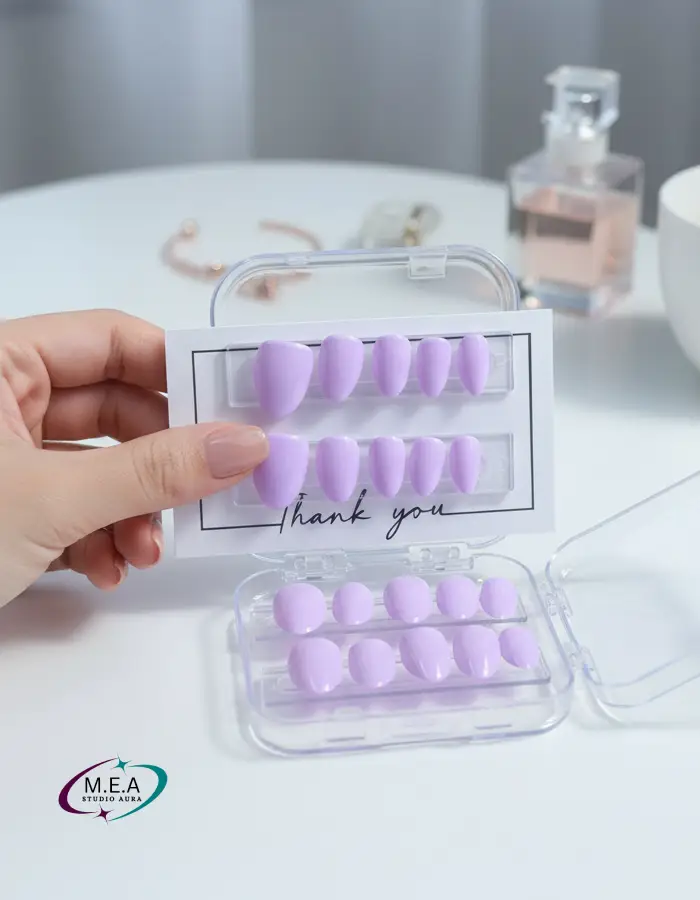 Ce set de press on nails unis se décline en plusieurs formes pour s’adapter à tous les styles et toutes les occasions. La douceur d’un mauve subtil sublime vos mains et apporte une touche élégante à chaque geste.