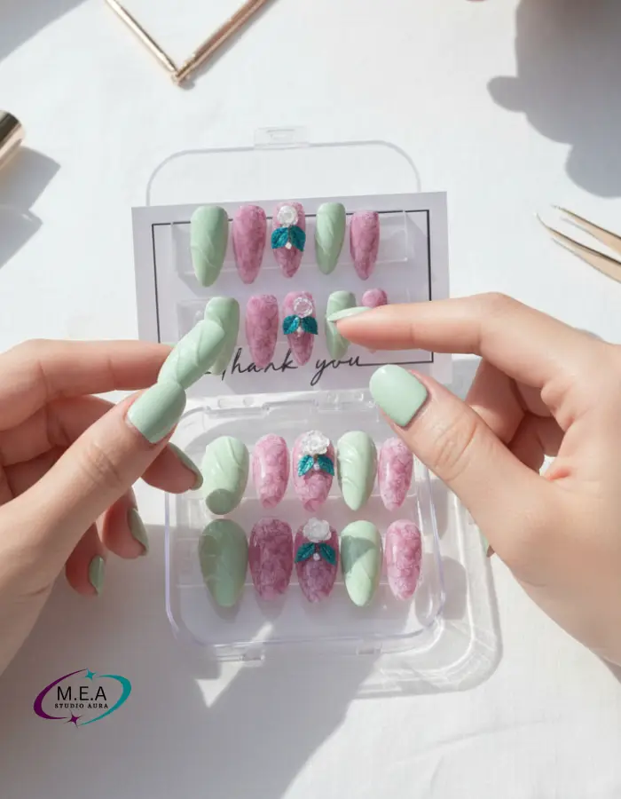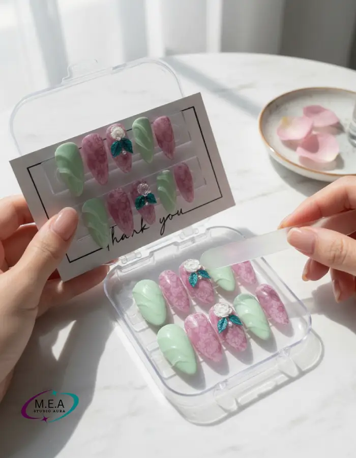 – Chaque set est imaginé et réalisé à la main pour sublimer vos mains avec douceur et lumière.