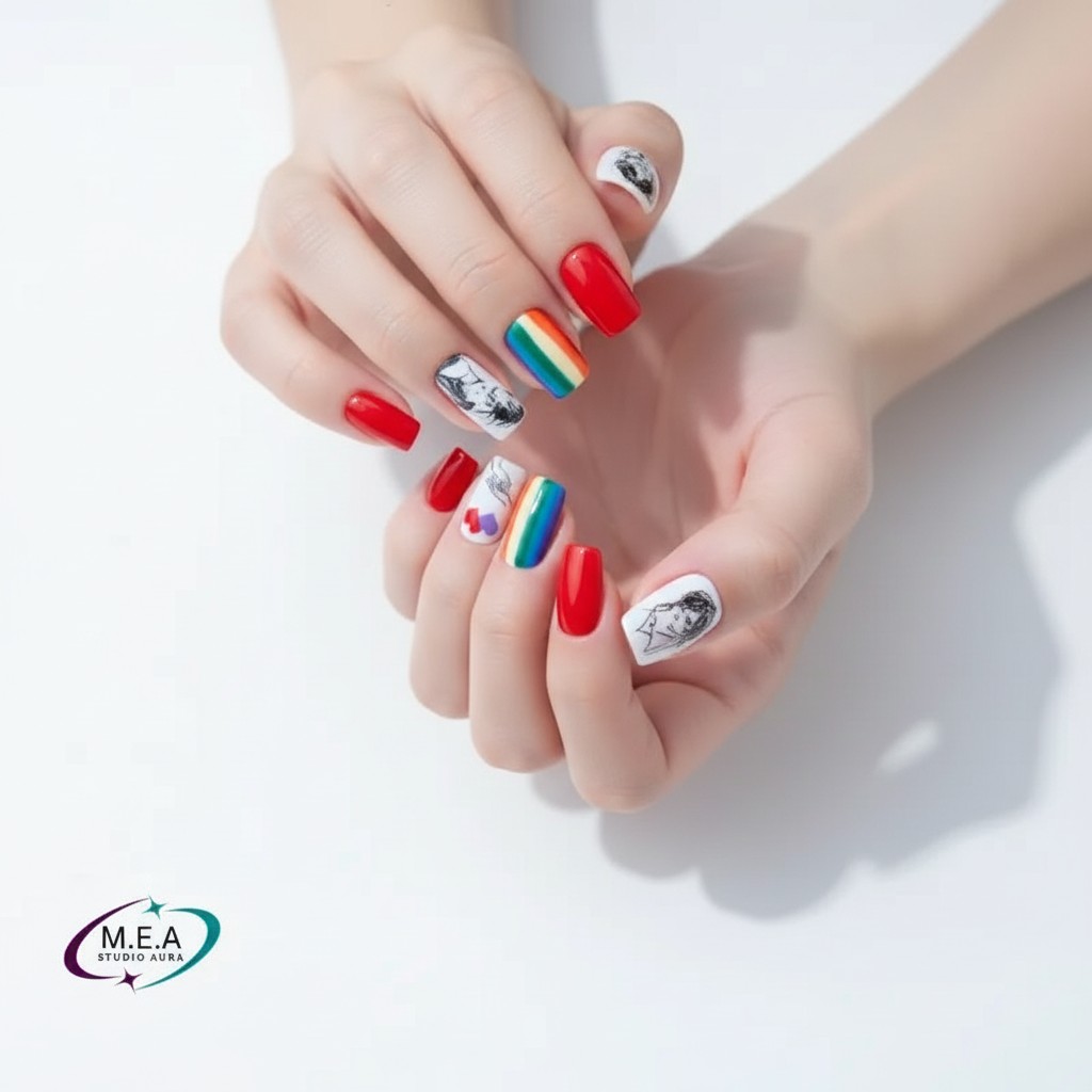 Chaque capsule est réalisée avec soin pour mettre en valeur les couleurs iconiques du Rainbow Pride. Les motifs en stamping apportent une dimension forte et symbolique à la manucure, représentant l’amour, la liberté et l’unité. Une création expressive, moderne et lumineuse, parfaite pour affirmer son identité avec élégance.