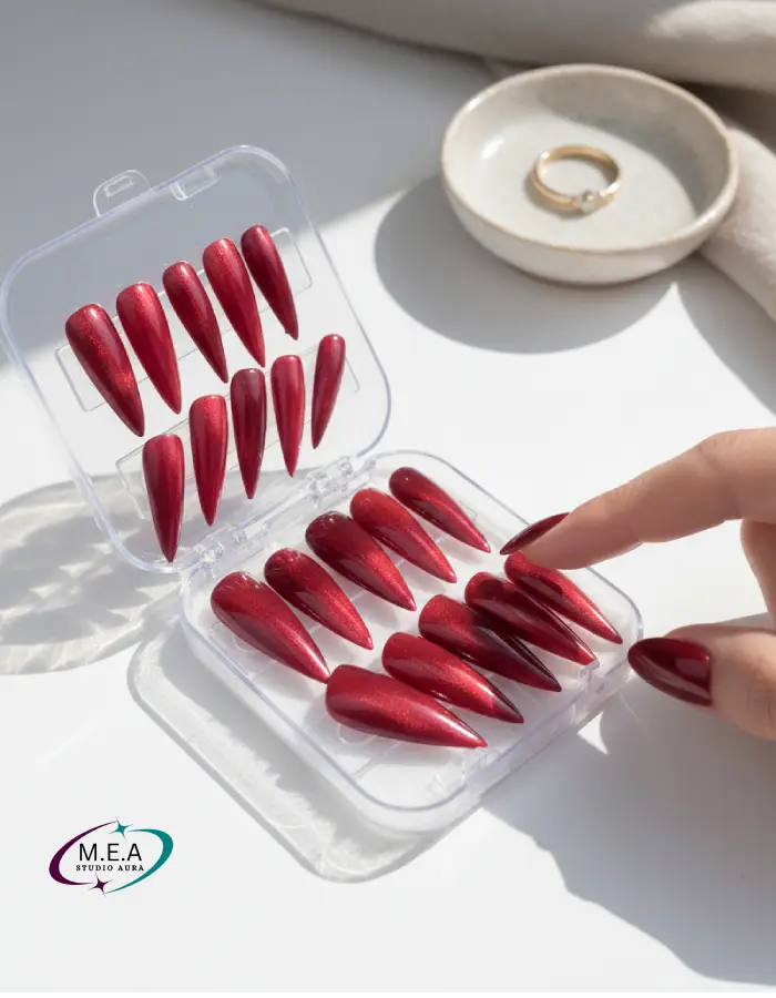 | Rouge Flamboyant | Amande Moyenne : Rouge Feu, Medium Carré : Rouge Flamme, Stiletto : Rouge Incandescent |