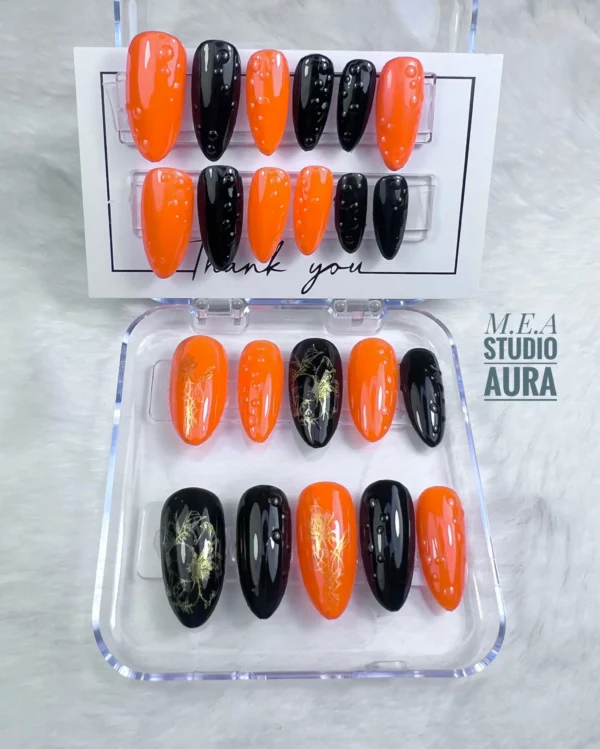 Chaque capsule est minutieusement travaillée pour offrir un rendu net et spectaculaire. Les motifs en stamping se prolongent subtilement sous les capsules pour un effet recto-verso, tandis que les bijoux collés à la main ajoutent du relief et de l’authenticité à la manucure.